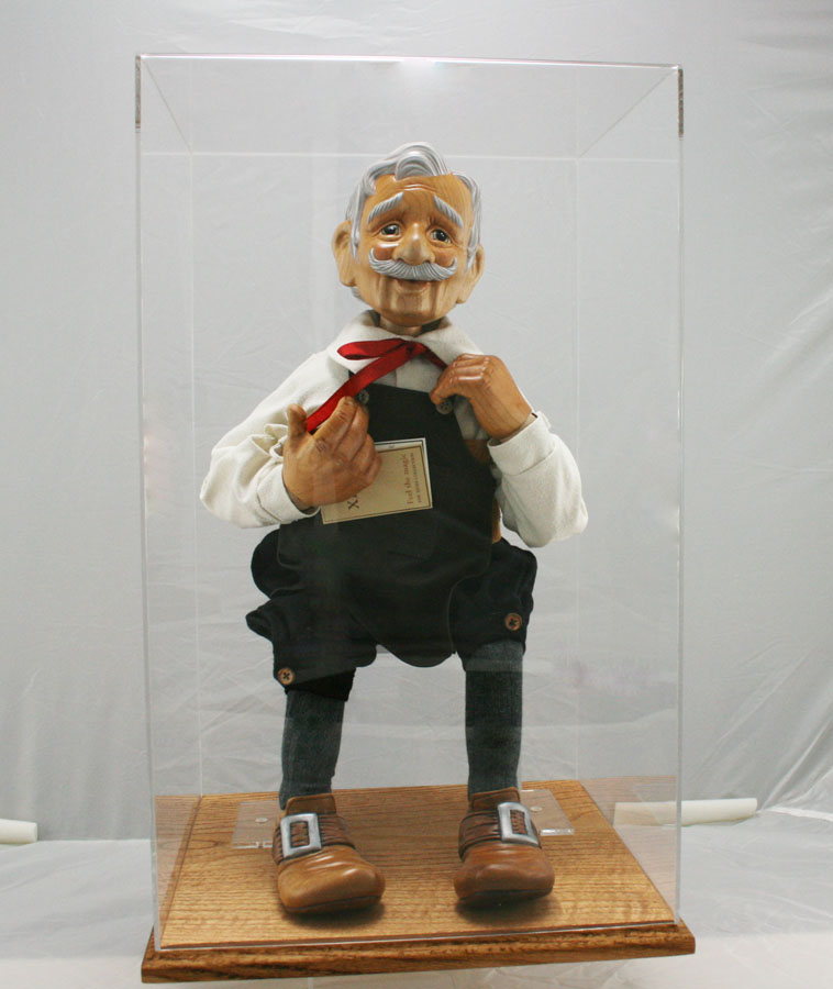 There is also a CUSTOM ACRYLIC bench to display the doll in a sitting position.