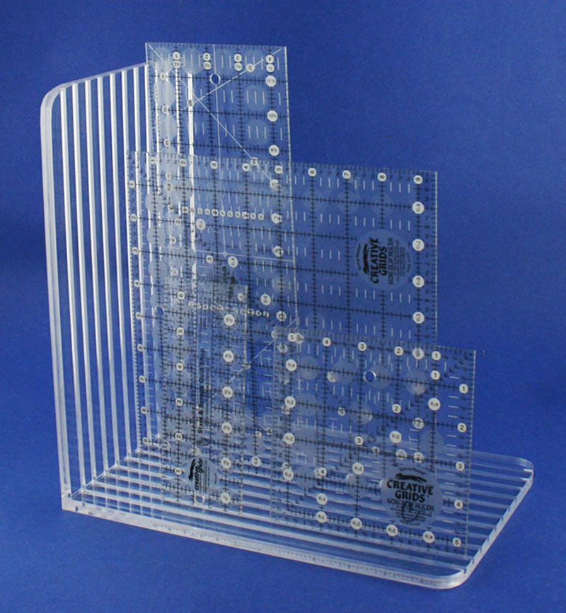 Clear Acrylic RULER DISPLAY. Organize your rulers and Templates with this 3/8" thick acrylic holder. It holds your rulers straight and vertical.