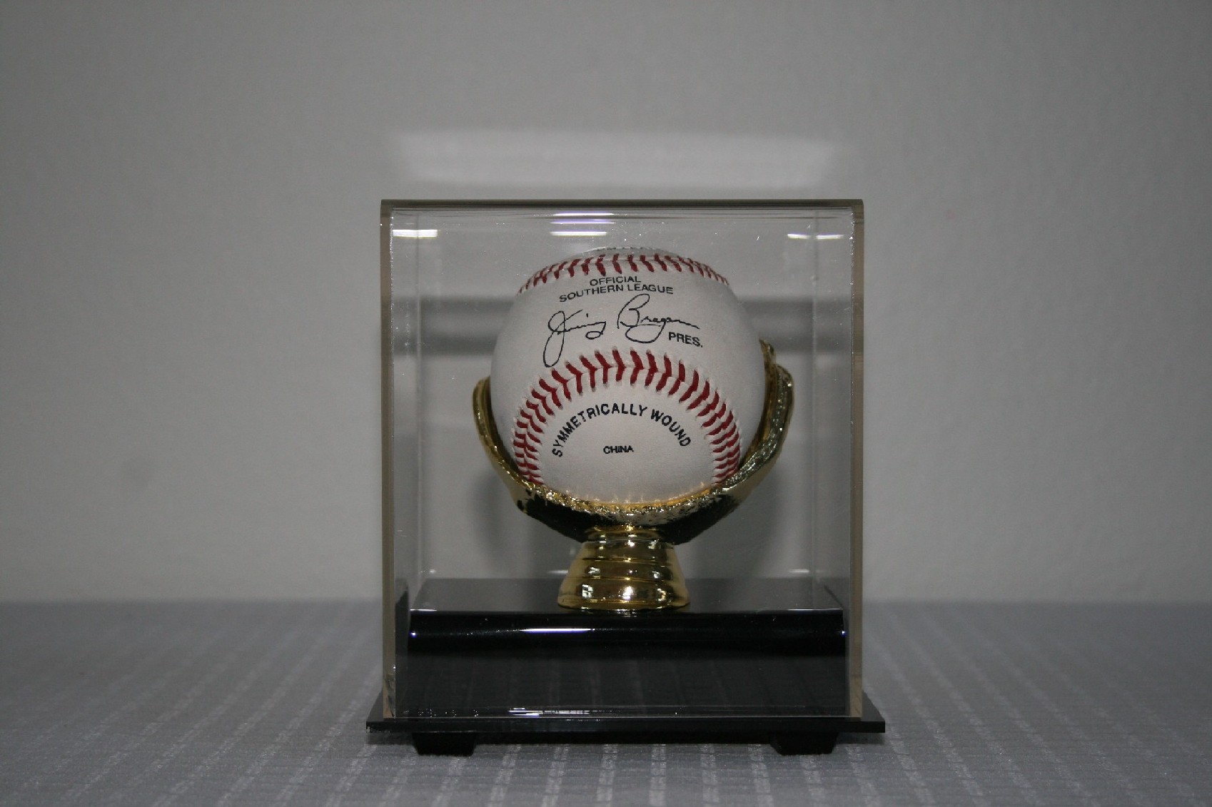 DELUXE GOLD GLOVE BASEBALL HOLDER The finest hand made BaseBall Display Case you will find. Made with Clear Acrylic Top and Black Acrylic Base and bumpers to protect your furniture.